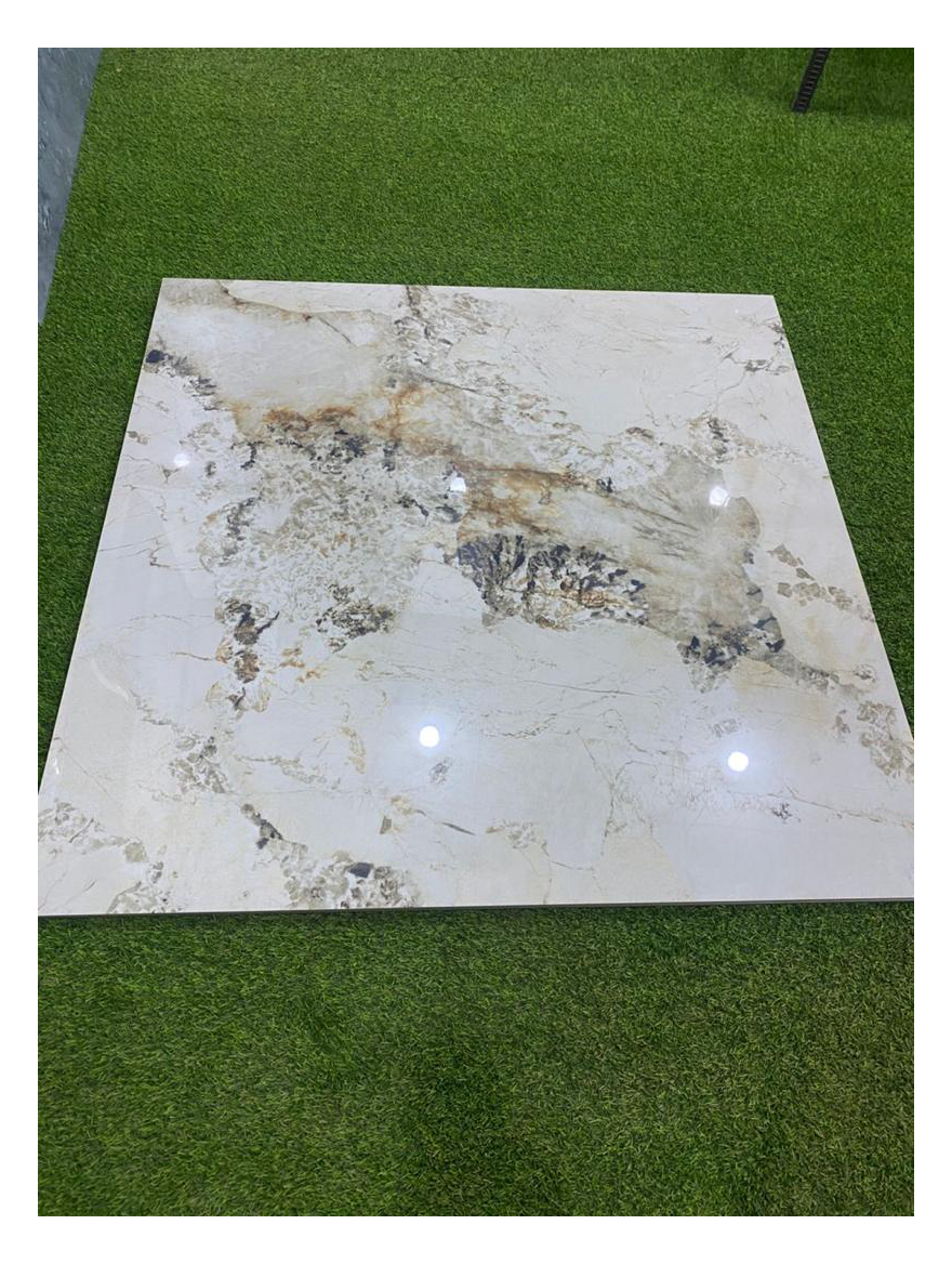 This premium large-format porcelain slab expertly replicates the dramatic, semi-precious look of natural onyx or warm-veined marble. It features a soft creamy white to light beige base with bold, organic veins in rich browns, golds, taupes, and subtle dark accents that create striking movement and depth — giving a luxurious, almost translucent effect. The surface is highly polished (glossy finish) for brilliant light reflection, mirror-like shine, and an opulent high-end appearance. Made from dense, fully vitrified porcelain, it is completely non-porous, 100% stain-proof, and highly resistant to scratches, heat, moisture, impacts, and chemicals — far more durable and maintenance-free than real onyx or marble (no sealing required). Clean rectified edges, large square/jumbo format (visually ≈ 120 cm × 120 cm or similar, roughly 1.4–1.5 m²). Perfect for luxury applications: kitchen countertops & islands, bathroom vanities, feature walls, wall cladding, flooring, tabletops, or backlit panels where the veins can glow beautifully. It delivers the exotic, expensive look of rare natural onyx at a practical price while being hygienic and easy to clean.