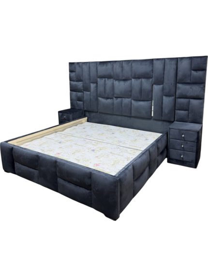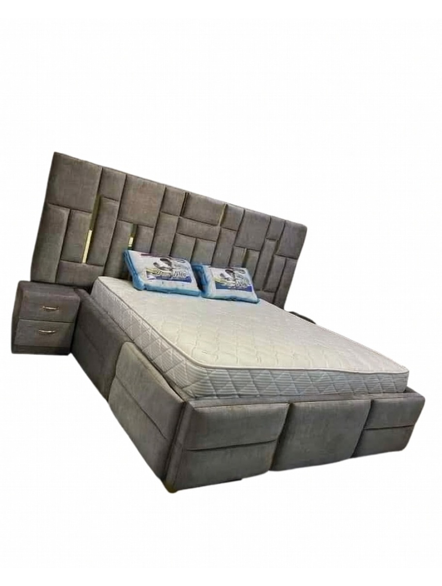 This is a premium, contemporary upholstered bed set designed for stylish master bedrooms in Nigeria, emphasizing plush comfort, modern geometry, and integrated storage. It’s a complete centerpiece popular among interior decorators and homeowners in areas like Port Harcourt, Onitsha, and Lagos for its hotel-like luxury and space-saving features.