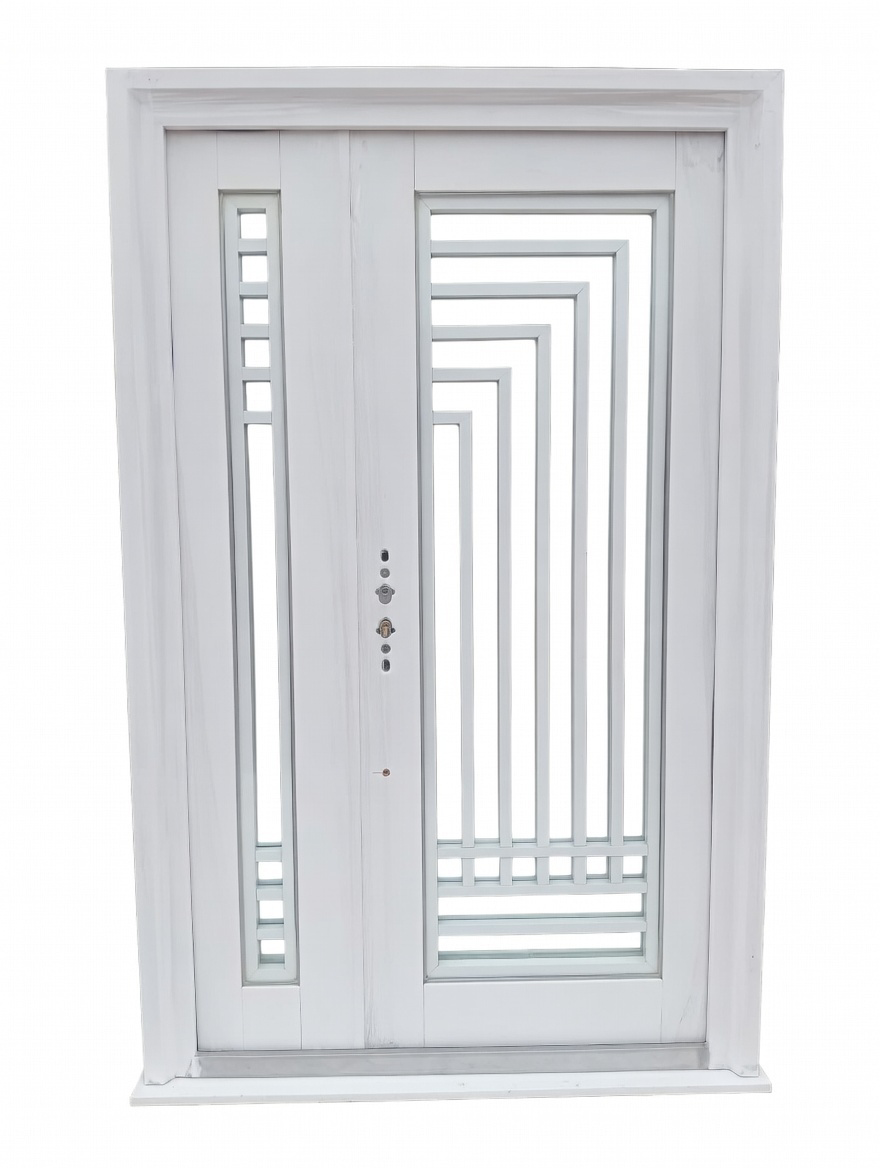SECURITY White Modern Steel Security Door – Double Leaf with Concentric Rectangular Glass Panels, Multi-Point Locking System and Reinforced Frame