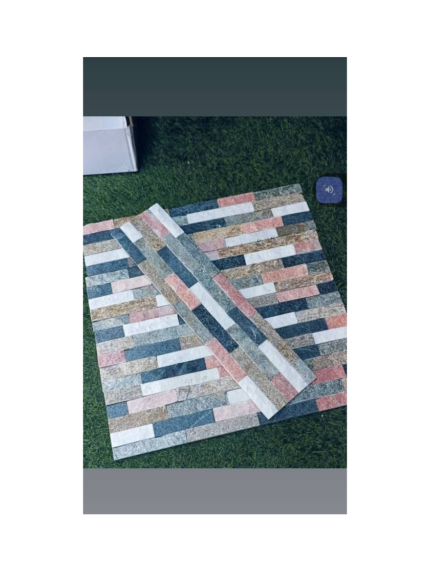 "Vibrant Multi-Color Mixed Marble Mosaic Tile – Rectangular brick-pattern strips in white, pink, beige, grey & black. Premium natural stone mesh-backed mosaic perfect for feature walls, bathrooms, and accent areas. Adds rich texture and modern-rustic elegance."